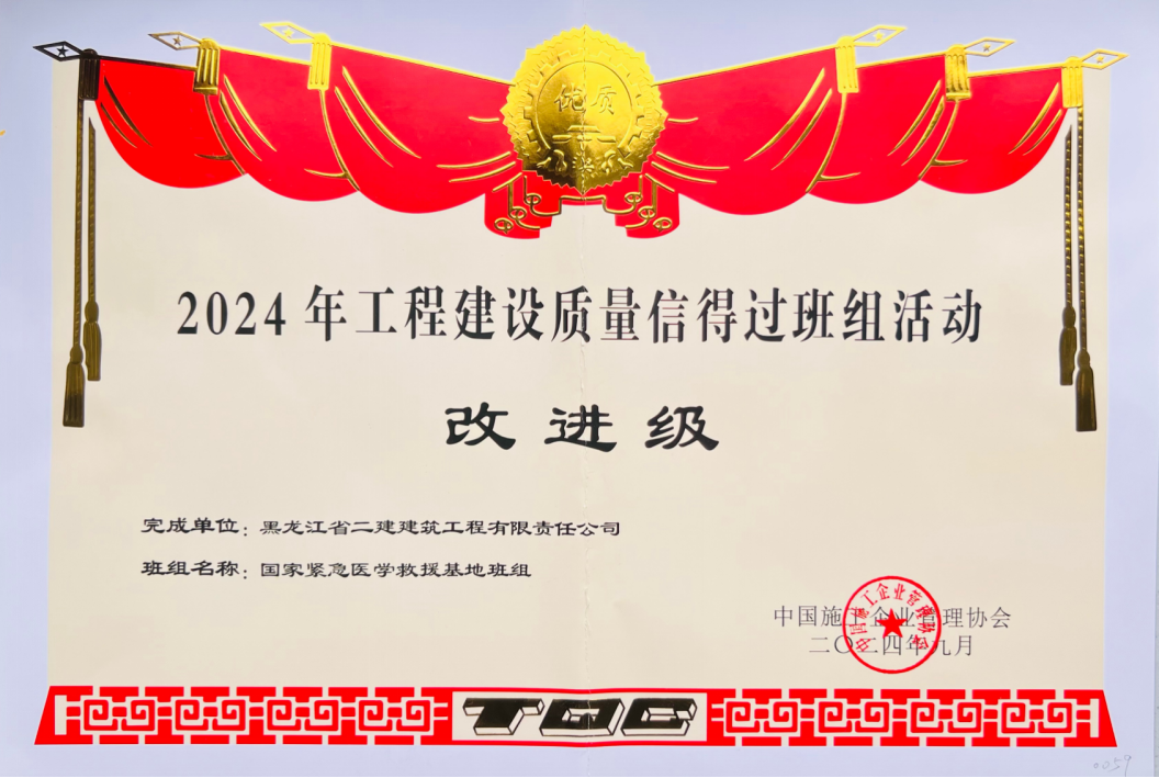 • 黑河市衛生健康中心項目部2024年工程建設質量信得過班組活動改進級